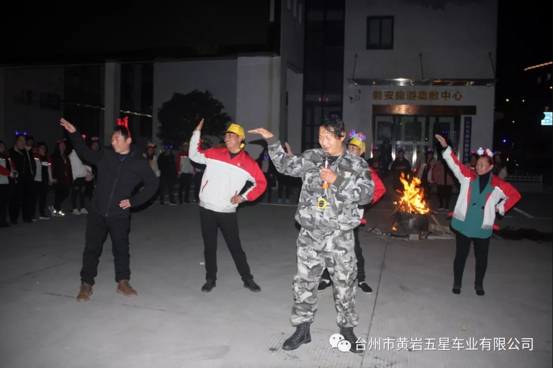 入住酒店,晚餐后,在教官的帶領下一場“紅紅火火,熱情激揚”——篝火晚會。當熊熊篝火在黑夜中燃起,大家圍在一圈牽著手,搭著肩,來段兔子舞熱身開場。